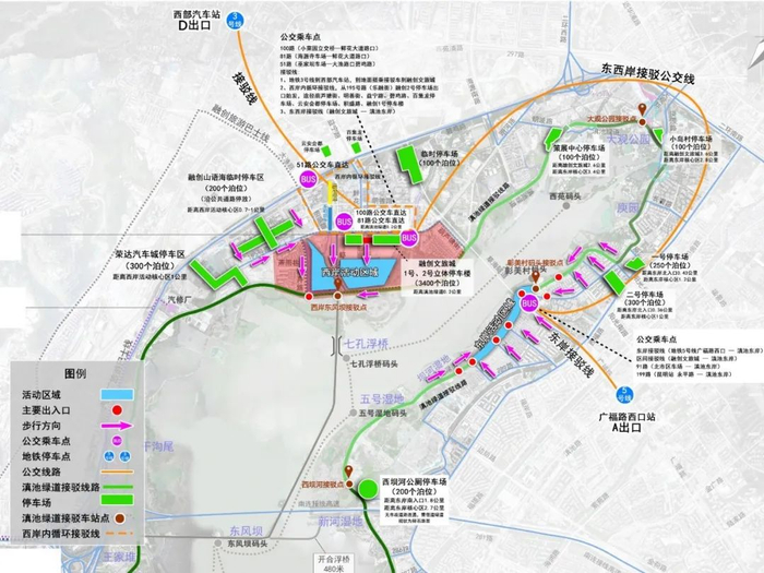 西岸核心区域(滇池后海、滇池西岸PARK周边等)设置了停车区。