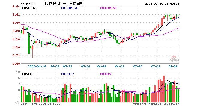 8月6日医疗设备ETF(159873)份额增加300.00万份,最新份额1.39亿份,最新规模8539.41万元