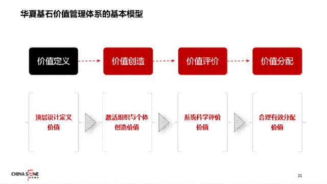 所以,在价值分配循环的基础之上,华夏基石又进一步提出了“价值定义”这个概念,并把它细化为由顶层设计来定义价值,即如何衡量企业中长期、中短期的价值。
