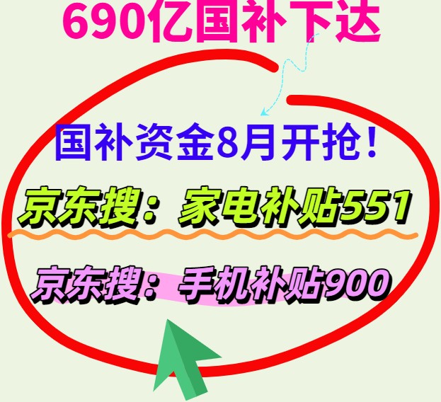 记住了!家电家居家具类国补的领取方法是:京东APP搜「家电超补886」国补最高立减2000元。
