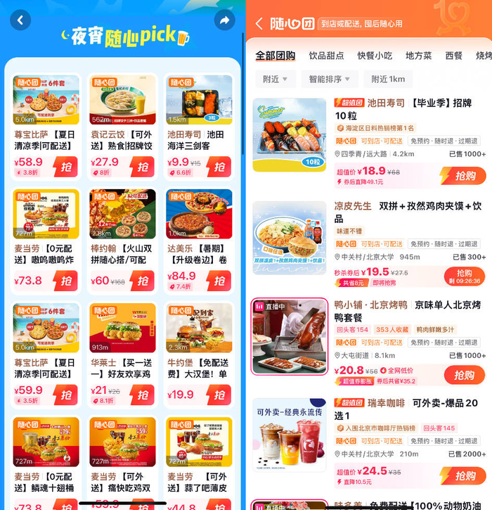 2024年6月,抖音外卖被整合到抖店到家外卖平台并上线小时达专区,8月又回归生活服务业务线。当年10月,抖音将原有的团购配送业务升级为“随心团”,业务逐步向“随心团”迁移。