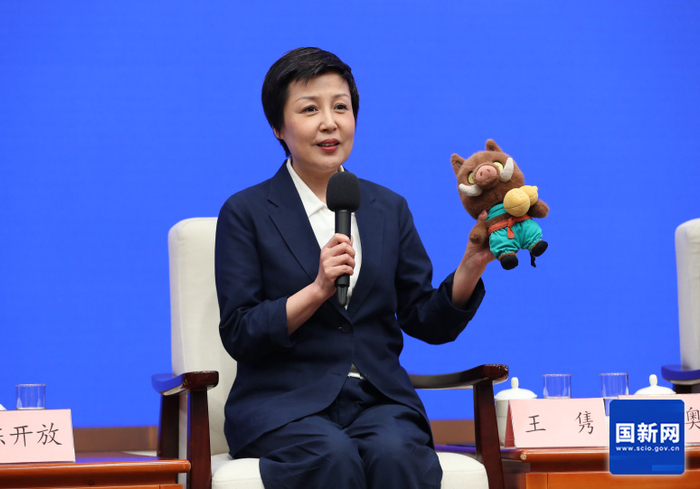 国产动画喜剧电影《浪浪山小妖怪》也正在热映。这部电影的总出品人、总制片人,上海电影(集团)有限责任公司董事长王隽在国新办的现场,也带来了一位特别的“客人”——小猪妖玩偶。