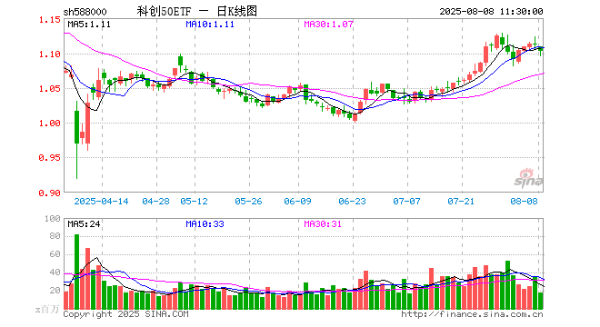 科创50ETF(588000)跌0.81%,半日成交额19.37亿元