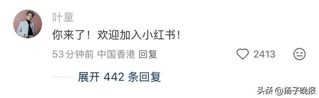 评论区,知名女演员叶童给张曼玉留言:“你来啦!欢迎加入小红书!”