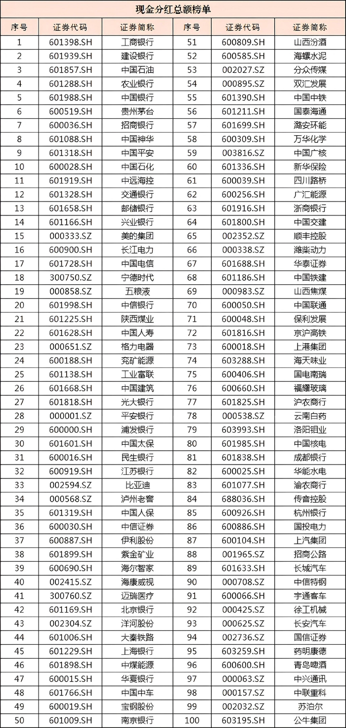 2025年上市公司现金分红榜单出炉(附前100家)