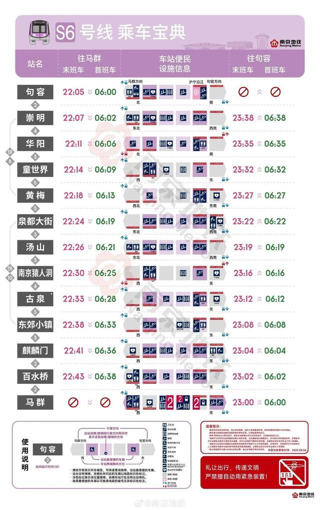 南京地铁5号线北段已于8月6日6时正式开通运营,北段的开通初期运营标志着地铁5号线实现全线贯通运营。南京地铁13条已开通线路的运营里程由484公里增加至508公里,车站总数由234座增加至255座。来看最新版南京地铁乘车宝典,13条地铁线路首末班车时间表快收藏起来不迷路!