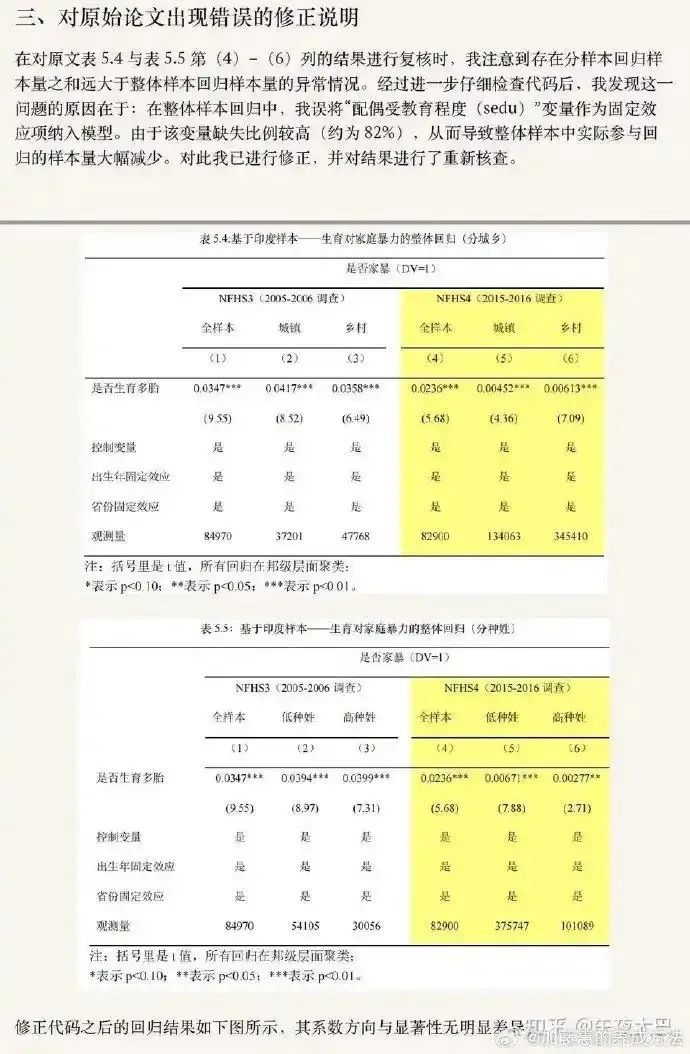 更严重的是,网友深挖其硕士学位论文《中印生育行为影响家庭暴力的经济学分析》发现多处学术不端:论文中声称中国有专门的《离婚法》(实际为《婚姻法》相关条款),关键数据世界卫生组织公布为36.1%,却被其“优化”为28.3%。此外,论文还存在逻辑错误、预设结论、大量抄袭、变量操纵及歪曲引用源等问题。