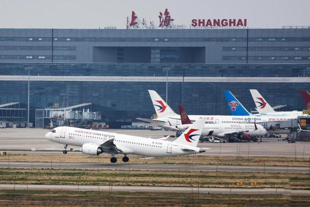 一架东方航空C919客机正从上海虹桥机场起飞。中新社