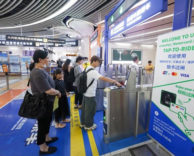 旅客在北京大兴机场过安检闸机。中新社