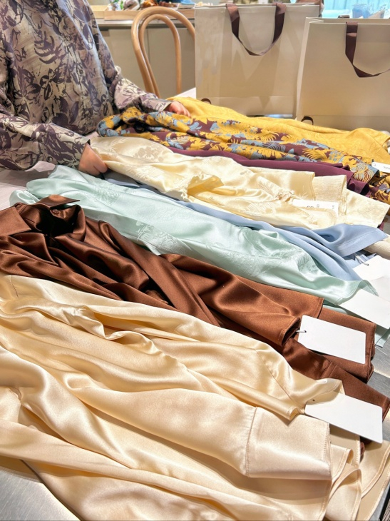 随着这几年新中式成为年轻人的“心头好”,一些面料自带呼吸、细节美到开挂的国潮丝绸服装,更是让“国风党”狂喜。在淘宝、小红书、抖音等平台以及目不暇接的主播直播间里,“沉浸式穿搭展示+限时促销”的销售模式,让年轻人忍不住买买买,头部主播单场成交额甚至可达千万级。