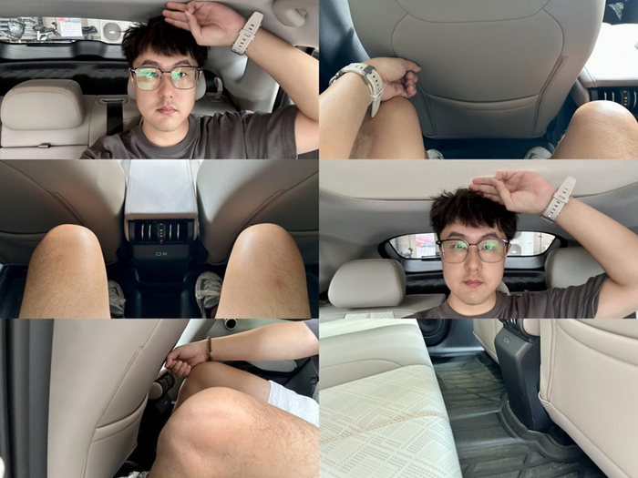 像我身高1米83,我把前排座椅调到舒服的位置,后排腿部空间仍然能有1拳多,头顶空间也有3指出头。