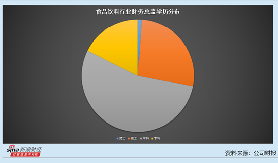 从学历来看,以本科为主,占比达到58%;其次是硕士,达到28%。专科有16名,占比达到12.4%。此外博士有1名,为立高食品财务总监王世佳;中职也有一名,为春雪食品财务总监郝孔臣。