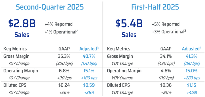 Baxter实现GAAP净利润9100万美元,成功扭转去年同期的净亏损局面;每股收益(EPS)为0.24美元,调整后EPS为0.54美元,同比增长28%,但略低于市场预期的0.61美元。受益于新一代平台产品的持续渗透与成本控制,公司盈利能力正稳步修复。