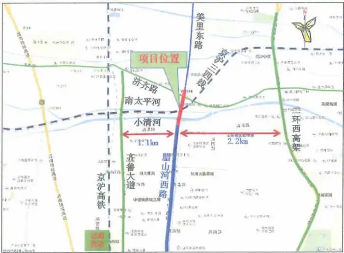 因济南市腊山河西路北延工程上跨京沪三、四线修建立交桥工程施工,将于2025年8月16日0时封闭小清河北路(齐鲁大道-西吴家堡村委会)。