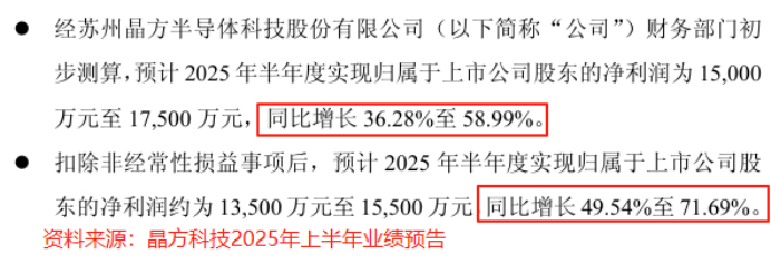 最直观的是,2025年上半年晶方科技预计实现净利润1.5亿元到1.75亿元,同比预增36.28%到58.99%,延续了2024年高成长的势头。