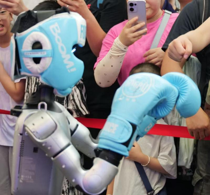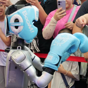 舞蹈形态的机器人则尽显绅士风度,彬彬有礼地邀请小朋友握手,引得孩子们竞相伸出手臂。最为精彩的当属机器人一个漂亮的回旋踢,踢倒沙袋的瞬间全场观众惊叫连连,许多小朋友更是忍不住小幅度地模仿,试图重现这一酷炫瞬间。