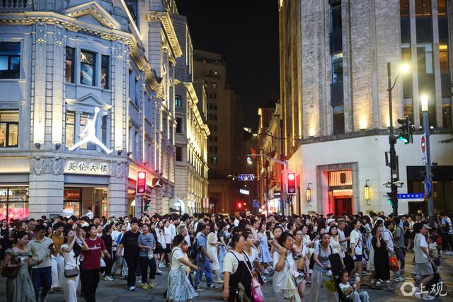 8月8日晚间十点,南京路步行街依然人潮涌动。