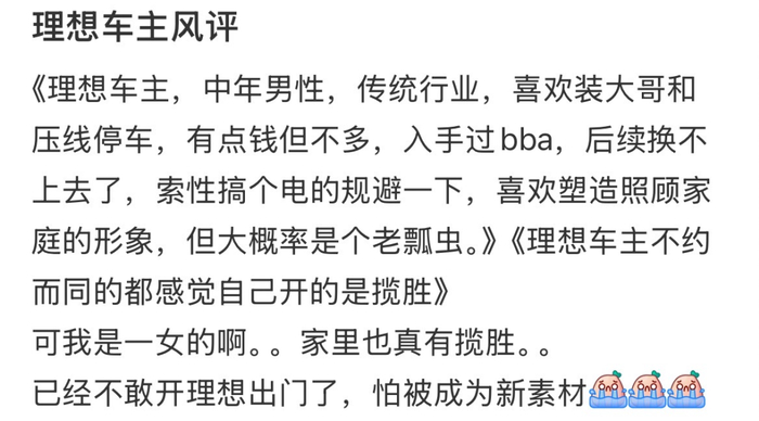 当然,主编认为,打“地图炮”,强行给理想车主上刻板印象一定程度上是不太理智的。