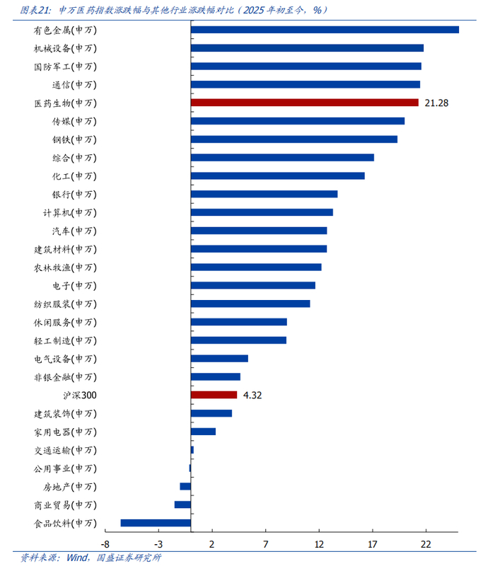 在所有行业中,当周医药涨跌幅排在第27位。2025年初至今,医药涨跌幅排在第5位。