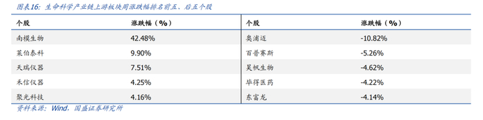 当周(8.4-8.8)申万医药指数下跌0.84%,生命科学上游涨幅算数平均值为1.39%,涨幅中位数为0.00%。