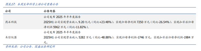 南模生物、禾信仪器、奥浦迈、东富龙、泰坦科技、纳微科技、百普赛斯、药康生物等。
