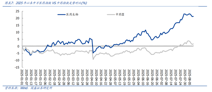 当周(8.4-8.8)申万医药指数下跌0.84%,中药指数下跌1.88%,跑输医药指数1.05个百分点;2025年初至今申万医药指数上涨21.28%,中药指数上涨1.68%,跑输医药指数19.61个百分点。