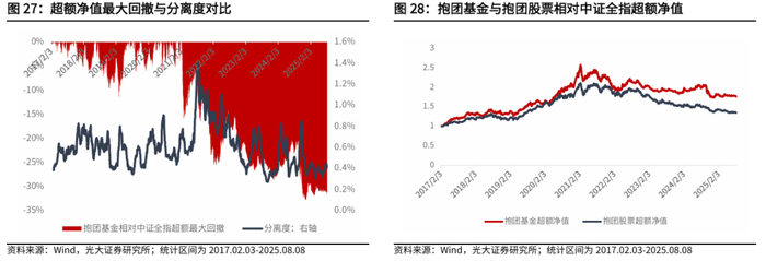截至2025年8月8日,基金抱团分离度环比前一周小幅下降。最近一周抱团股和抱团基金超额收益环比前一周下降。