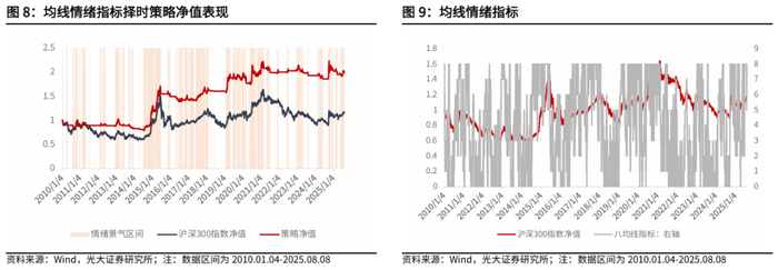 截至2025年8月8日,从均线情绪指标来看,近期沪深300指数处于情绪景气区间。