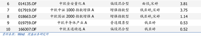 钱亚婷女士,2016年4月5日加入中欧基金管理有限公司,历任分析师、基金经理助理,当前在管9只产品,合计规模为34.02亿元。