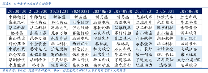 指数前十大成分股名单变化较频繁,指数增强方法跟踪指数的发挥空间较大。从指数成分股前十大重仓股历史变迁频率来看,每个季度前十大重仓股均有较大程度的变化,这也表明该指数的跟踪难度较大,采用指数增强的量化方法进行跟踪能够有较大的发挥空间,从而更为准确的把握成分股的频繁变化。