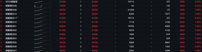 8月11日,商品期货开盘,碳酸锂期货所有合约全线涨停。其中主力合约开盘直接涨停,涨幅为8%,报81000元/吨。