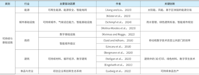 表3 可持续和基础设施概述