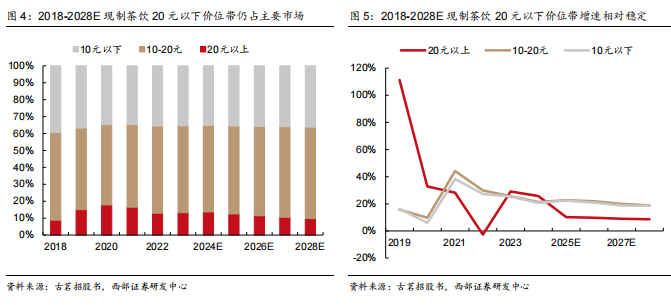 不同价位带对应不同维度高要求,各龙头需持续筑高核心壁垒。10元以下价位带追求极致性价比,对供应链要求强,产品标准化,蜜雪集团为龙头;10-15元价位带追求极致质价比,性价比较高的同时追求产品品质与口味,供应链与产品运营力要求均高,古茗有望成为龙头;15-20元价位带追求极致品牌,具体体现高产品品质与强社交属性,对产品研发与品牌运作能力要求高,喜茶、霸王角逐龙头。