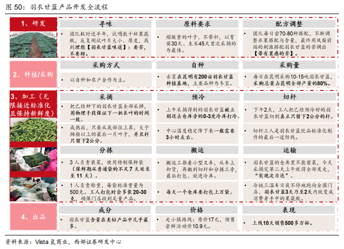 产品研发全流程精细化,保证标准化品质。以2025年3月古茗推出的果蔬杯为例,从研发寻味、配方调整到建设羽衣甘蓝种植基地、最大化做到标准化加工到冷链运输及出品,古茗新品推出具备强竞争力。