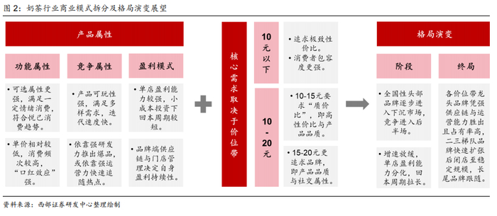 茶饮行业竞争加剧,全能型品牌决胜各价位龙头。我们认为奶茶行业目前已进入商业模式跑通的成熟发展阶段,前端的产品上新速度与品质稳定性依赖后端供应支撑能力,而中端门店盈利的持续性对品牌运营管理能力提出高要求,头部效应加剧下具备三位一体综合能力的品牌将最终胜出,且长期稳定占据所处价位段的绝对龙头地位。同时价位带越高,能满足细分消费需求的品牌越多元,二三梯队品牌预计快速扩张后闭店至稳定规模,本地长尾品牌长期跟随。