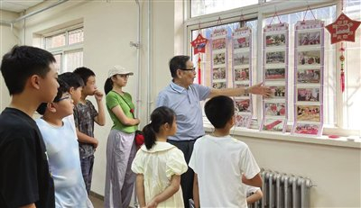 7月22日9时,绥中社区党群服务中心活动室里,冷气驱散了暑热,却驱不散满屋的“热气腾腾”,书声、笑声、棋子落盘声交织成独特的暑期交响。80岁的李海城用布满岁月痕迹的手,展示着自己珍藏多年的剪报集,随后又耐心地为孩子们讲授剪报的意义和技巧。稍远处,72岁的李美华带着年龄更小的孩子围坐在一起,抑扬顿挫地为大家读着绘本,孩子们乌溜溜的眼睛里闪着光。