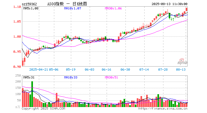 8月13日,截止午间收盘,A500ETF工银(159362)涨1.02%,报1.094元,成交额3630.42万元。A500ETF工银(159362)重仓股方面,贵州茅台截止午盘跌0.92%,宁德时代涨2.91%,中国平安涨0.77%,招商银行跌0.18%,兴业银行涨0.22%,长江电力涨0.04%,美的集团涨0.39%,紫金矿业涨3.69%,比亚迪涨1.69%,东方财富涨2.33%。