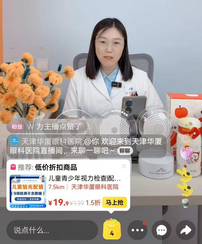 晚上7点,视光、斜视与小儿眼科白艳主任如约走进直播间,为线上观众带来了一场主题为"睛彩第1课浅谈近视防控"的科普直播,还特别推出了暑期视光项目优惠套餐,吸引了数千名家长在线观看,互动区提问不断,热度攀升。