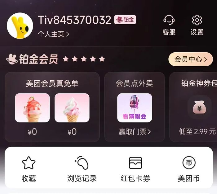 剁椒Spicy关注到,在美团会员界面中“会员点外卖赢取演唱会门票”被放置在了显眼位置,与其并列的是“美团会员真免单”活动。