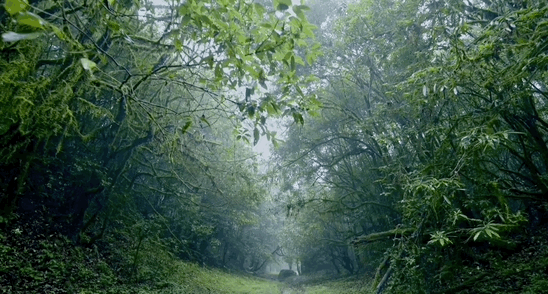 有苔藓蕨草遍附树枝