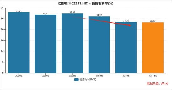 Wind数据显示,埃斯顿的毛利率近年整体出下降趋势,毛利率由2020年的33.71%降至2024年的28.29%。