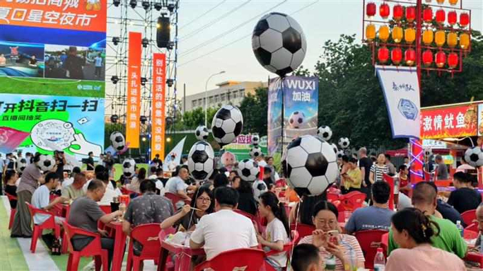 夜幕降临,新地假日广场灯火璀璨,改造升级后的街区焕发新颜——平整的广场道路、现代风建筑外观与错落的景观休闲区相映成趣。80余家商户涵盖多元餐饮,香气四溢。比赛日,西广场的“苏超”转播成为焦点,露营椅上坐满举着加油棒的球迷,呐喊声不断。现场观看“苏超”直播,赢取餐饮优惠券、啤酒以及各种纪念品。一家商户老板笑着说:“看球的人多了,店里生意翻了番,这热闹劲儿真好!”