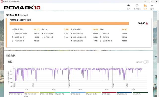 PCMARK 10 EXTENDED模式测试中,OMEN暗影精灵11 总分达10806 分,其中游戏性能子项得分27547 分,数位内容创作15314 分,生产力7852 分。这一成绩表明其不仅是游戏利器,在专业创作场景中同样表现出色。