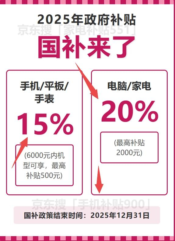 除了家电,手机数码也是重头戏。售价6000元以下的手机、平板、智能手表/手环,补贴比例15%,最高500元。像5999元的旗舰机,补贴完可能直接变“5字头”。而且这些补贴可以叠加电商平台的满减红包,用下来价格更香。
