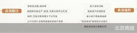 据介绍,其业务流程主要包括客户咨询对接、收集客户负债信息、建立客户服务微信群、“规划老师”做规划以及报价、确定委托报价签署合同等,在获客路径上,主要包括微信朋友圈、微信群等社交圈层;新媒体获客,包括短视频内容生产、投流、优质内容评论引流等;以及贴吧、百度问答等图文平台引流;除此之外,其还将从POS机行业精准渠道获取客户资源,另外该公司还会定期分配潜在客户名单。