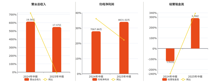 公司营业总收入为17.47亿元。归母净利润为8631.02万元,较去年同报告期归母净利润增加1563.16万元,同比较去年同期上涨22.12%。经营活动现金净流入为3.78亿元,较去年同报告期经营活动现金净流入增加5.40亿元。