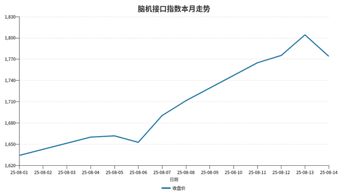 据wind数据显示,脑机接口指数自4月进入上行通道,叠加政策催化,从今年4月初至今涨幅为36.20%,达到1774.04点。有专家指出,脑机接口行业既承载现实需求,更指向颠覆性变革,而政策的落地,正加速将 “想象” 照进现实。