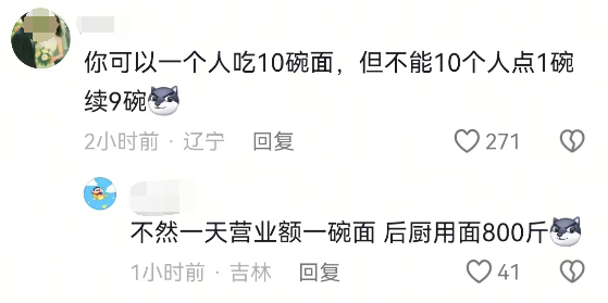 老板称,他的餐馆开业三年来,一直实行“一人一碗面,免费续面管饱”的规则,即顾客购买一碗面后,可免费添加面条,直到吃饱。但此规则针对的是“一人一碗”的个体消费,因此他无法接受“一碗面管一家人饱”的情况。