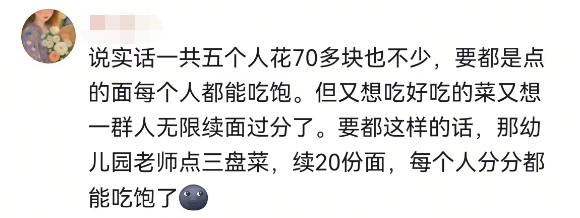 “他们点了一碗饸饹面13元、一份涮毛肚18元、两个凉菜,以及一份团购的15.8元羊肉串,总计消费70多元。在用餐过程中,几个大人为同行的孩子免费续面了两次。
