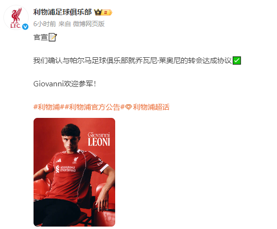 利物浦引援动作不小,本赛季夏窗,球队引进了维尔茨(1.36亿欧元)、埃基蒂克、弗林蓬、科尔克兹等多名强援,就在揭幕战开始前,利物浦官方还压哨签下了18岁的后卫莱奥尼!